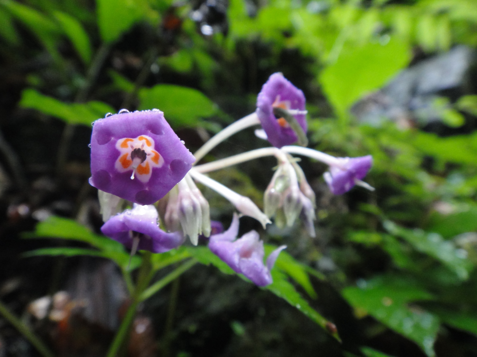 10:20 小草平ノ沢下降開始。小さい滝が連続する中、ペース良く下降して行きます。今度は、水もそこそこあり楽しい~。途中、岩にへばり付きながら頑張って生きているお花を発見(物知りの方名前を教えて下さい)。ほっと一息ついてさらに下降します。