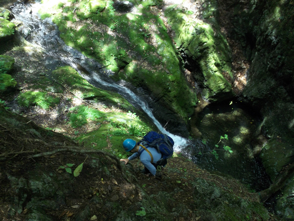 その後は、私たちは本流から分岐した支沢に入り、登山道とクロスするあたりで遡行終了。