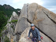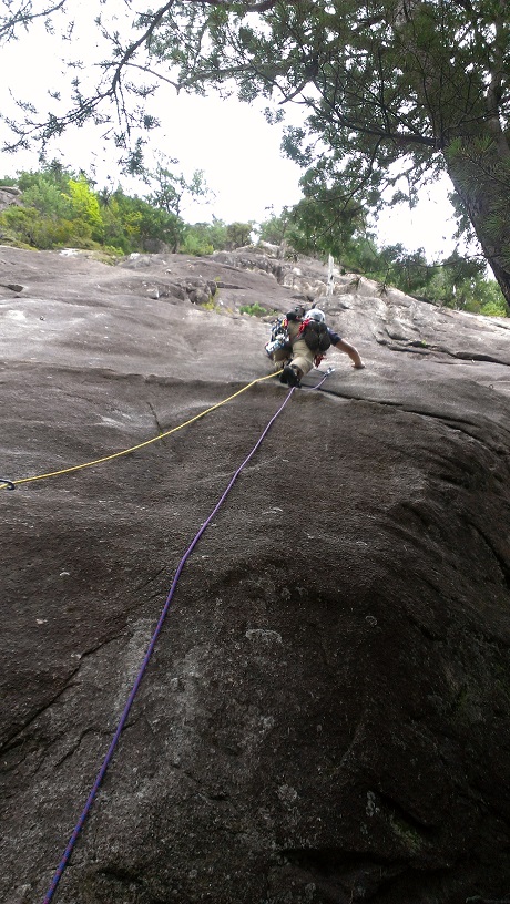 目指すはガマルートです。Tさんにリードしてもらい、KさんとTはフォローで登っていきます。8ピッチと長めのマルチも初めてだったのですが、それよりも特筆すべきはスラブという岩の形状。のっぺり、つるつる(※花崗岩なので実際はざりざりな手触りなのですが)とした見た目でとにかくホールドやスタンスが見えません。