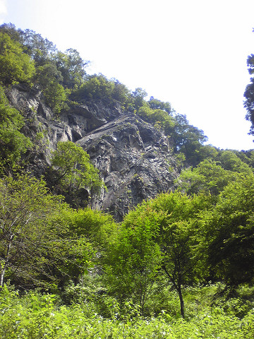 【連絡】 ①今年から岩場までのアクセスが変わったようです。 坂下集落からの林道が延伸されているので、終点まで歩き、登山道に入る。登山道からバッドレスキャンプ場への分岐には、バッドレス岩場の展望小屋があります。そこから荷物搬出入用の簡易軌道沿いの道を下るとバッドレスキャンプ場(2011年閉鎖済み)。キャンプ場から沢沿いの遊歩道をすこし下ると岩場の下部にある東屋です。 下流にガーデンキャンプ場があり、今回はそちらに下って時間ロスしました。林道を終点まで行くのがポイントかと思います。