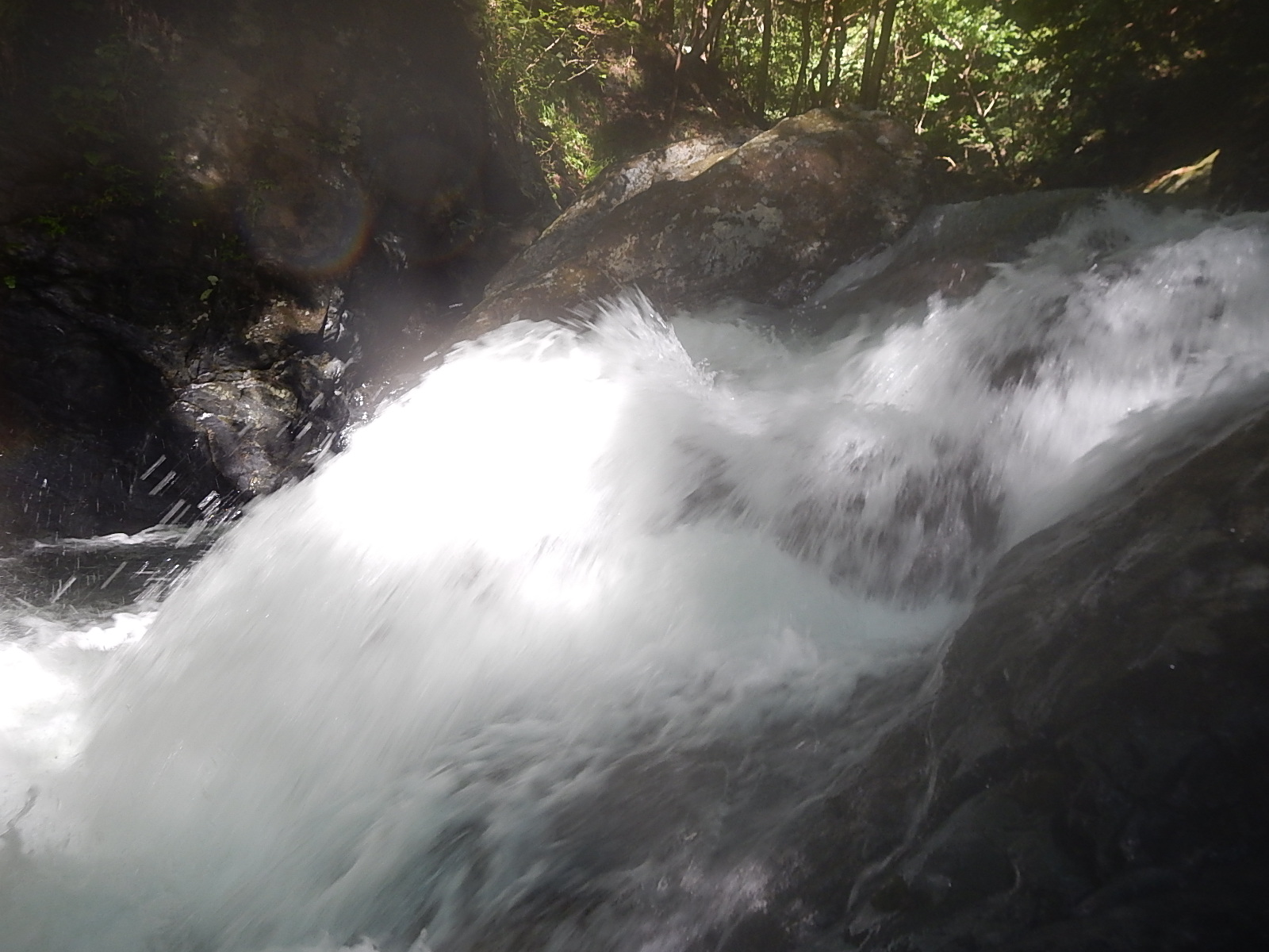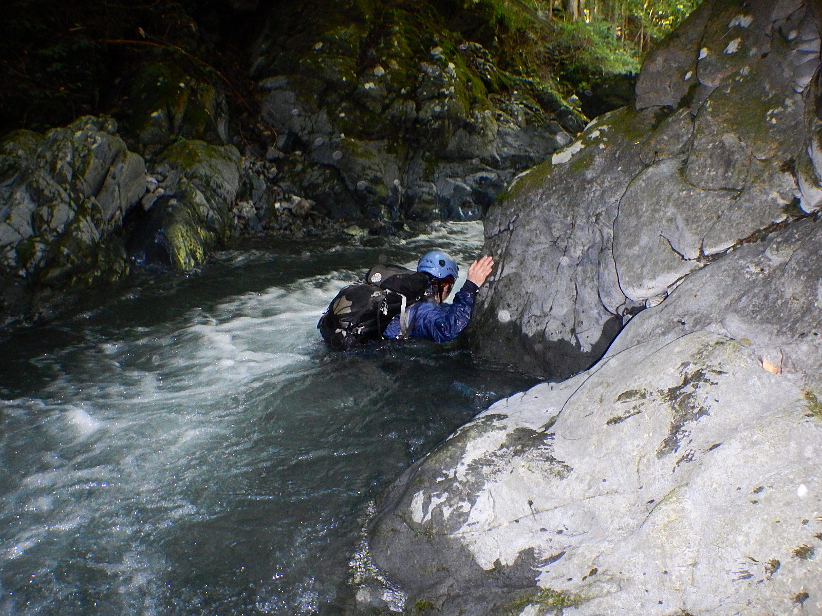 2m滝にはスリングの残置があり、ちょっとまじめに滝登りにトライ。