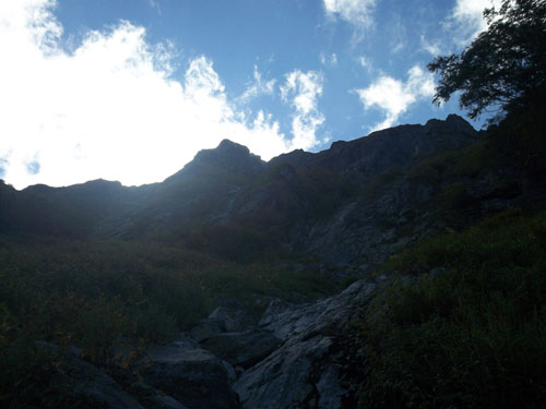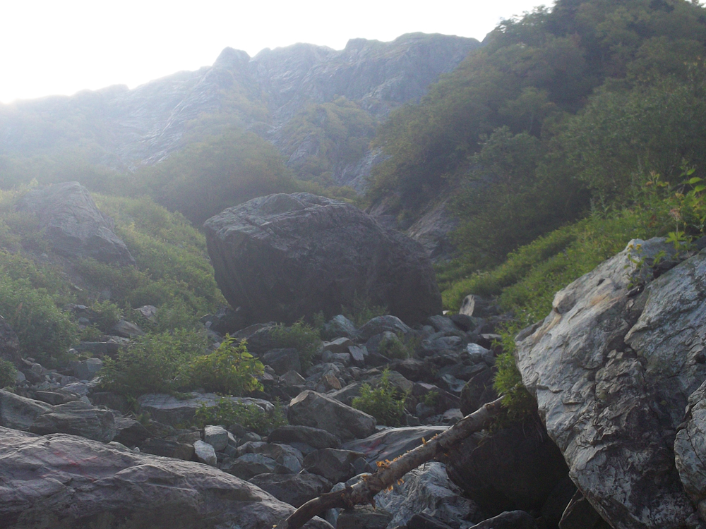 沢筋の夏道を登っていきます。このあたりで東の空が明るくなりヘッデン不要になる。
