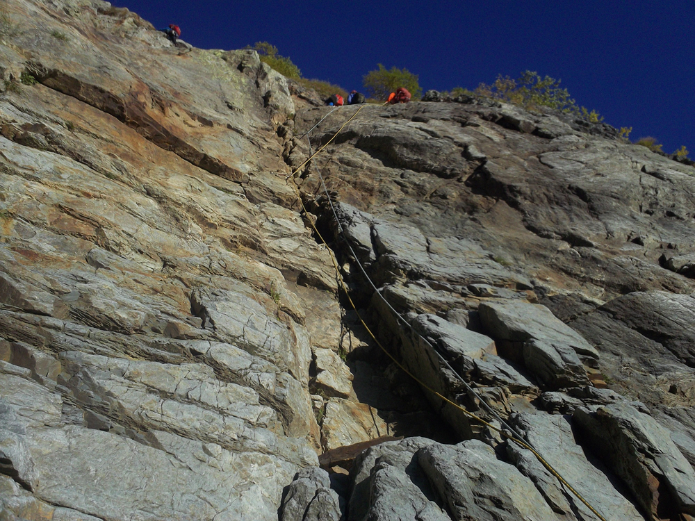 少々の待ち時間で、06:00頃、Ⅲ級程度の1p~2p目を快適に登る。
