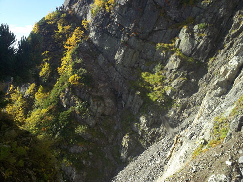 足元は何もないうえ(完っ全に崖)、崩壊時にできたらしい溝をエイヤと越えるところは