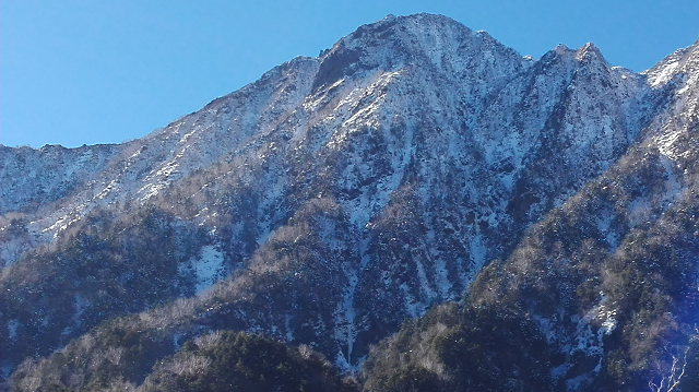 下山はツルネから。先行トレースがあったが途中で右の尾根に入って行く。おかしいと思いながら付いて行ってしまい、途中で登り返しが面倒になって昨年と同じ上ノ権現沢を下ろうと思ったが、雪が少なく急な氷結を見て引き返す。ここの尾根分岐は地元高根山岳会で設置されたブリキの標識があるのだが木が折れて分からなくなっているので、今度来たら直しておこう。好天で解け始めた雪がダンゴになって危ない。 今日は他に誰も入らなかったようで権現沢出合からは自分の足跡を踏みながら戻る。 出合小屋には男女2人パーティー、出合小屋から林道までで3パーティーとすれ違った。雪がなくても美し森林道の帰り道は長い。なぜいつも登りの往路より帰りの下り道の方が時間が掛かるのか解せない。