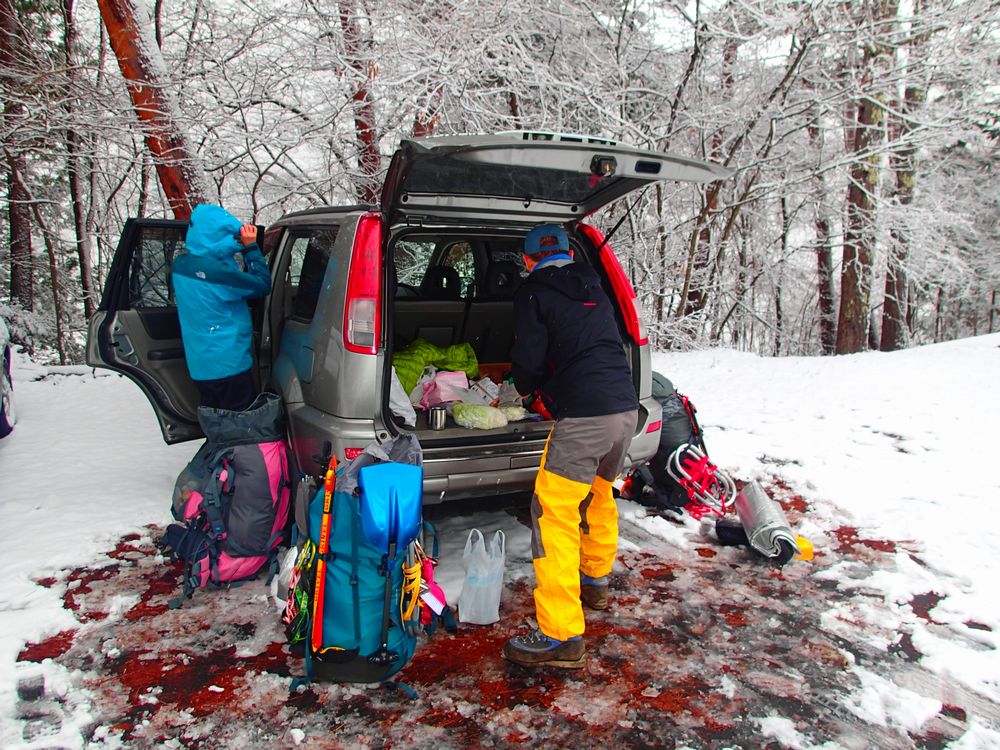 27日 ゲート 9:30 ⇒ 出発 10:00 ⇒東尾根取り付き 11:05 ⇒ 1550幕営 16:00