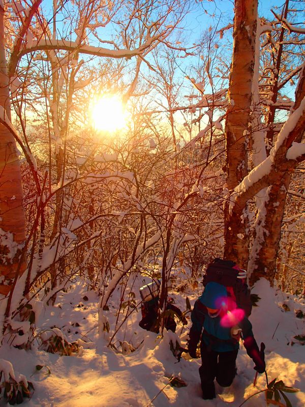 ヤブや踏み抜き、ラッセルに苦労しながら進む。