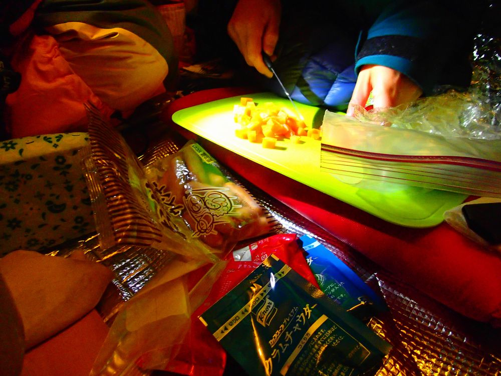 手袋も数枚重ねカロリー補給し