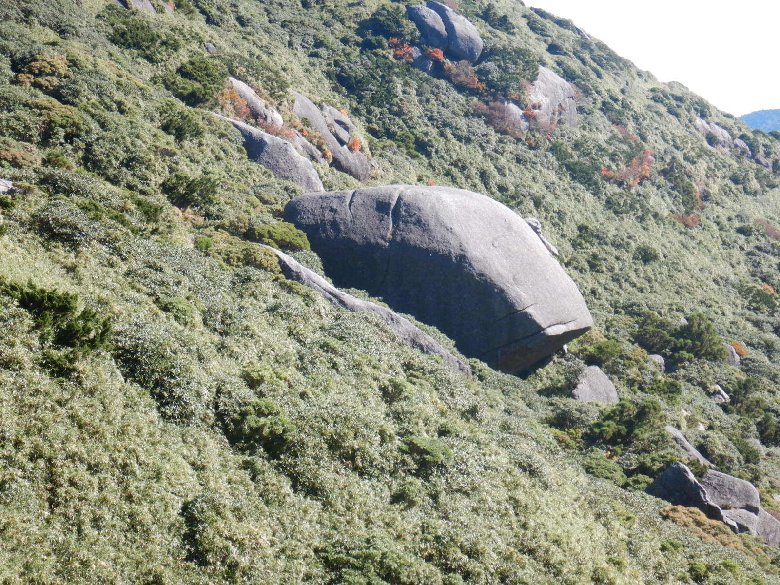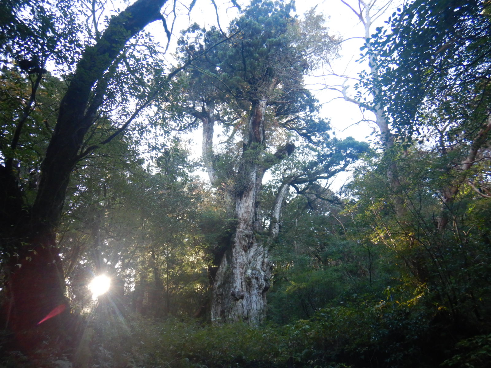 バスで白谷雲水峡に入り歩き始めるが、予報通り雨は止んでくれたがガスで真っ白だ。昨晩降り続いた雨でびしょびしょの登山道を登るが、そこは「もののけの森」。苔むした岩や木が楽しませてくれる。途中 屋久猿が道を塞いでおりにらめっこ。突っ切ろうとしたらちょっと威嚇されたので、ごめんごめんと下がったら、「仕方ないなー」という感じで道を譲ってくれた。これまた予報通り昼頃からすかっとした晴れとなり一気に気温が上がる。平日にもかかわらず本当に多くの「縄文杉」目当ての人が歩いている。ガイドツアーも多い。「XX杉」と名前のついた沢山の杉を見ながら楽しく歩く。20年ぶりの「縄文杉」は周りに2つの立派な木造りの展望台が出来ており、そこからしか見学する事ができない。縄文杉は相変わらず圧巻の迫力。すぐに高塚小屋に到着。20年前に泊った時は かなり古い小屋だったが、建て直されてお洒落な2階建ての小屋になっていた。さらに1時間ほど歩いて本日の宿 新高塚小屋に到着。20年前は新しくてピカピカの印象だったが、かなり古びた小屋になっておりびっくりした。